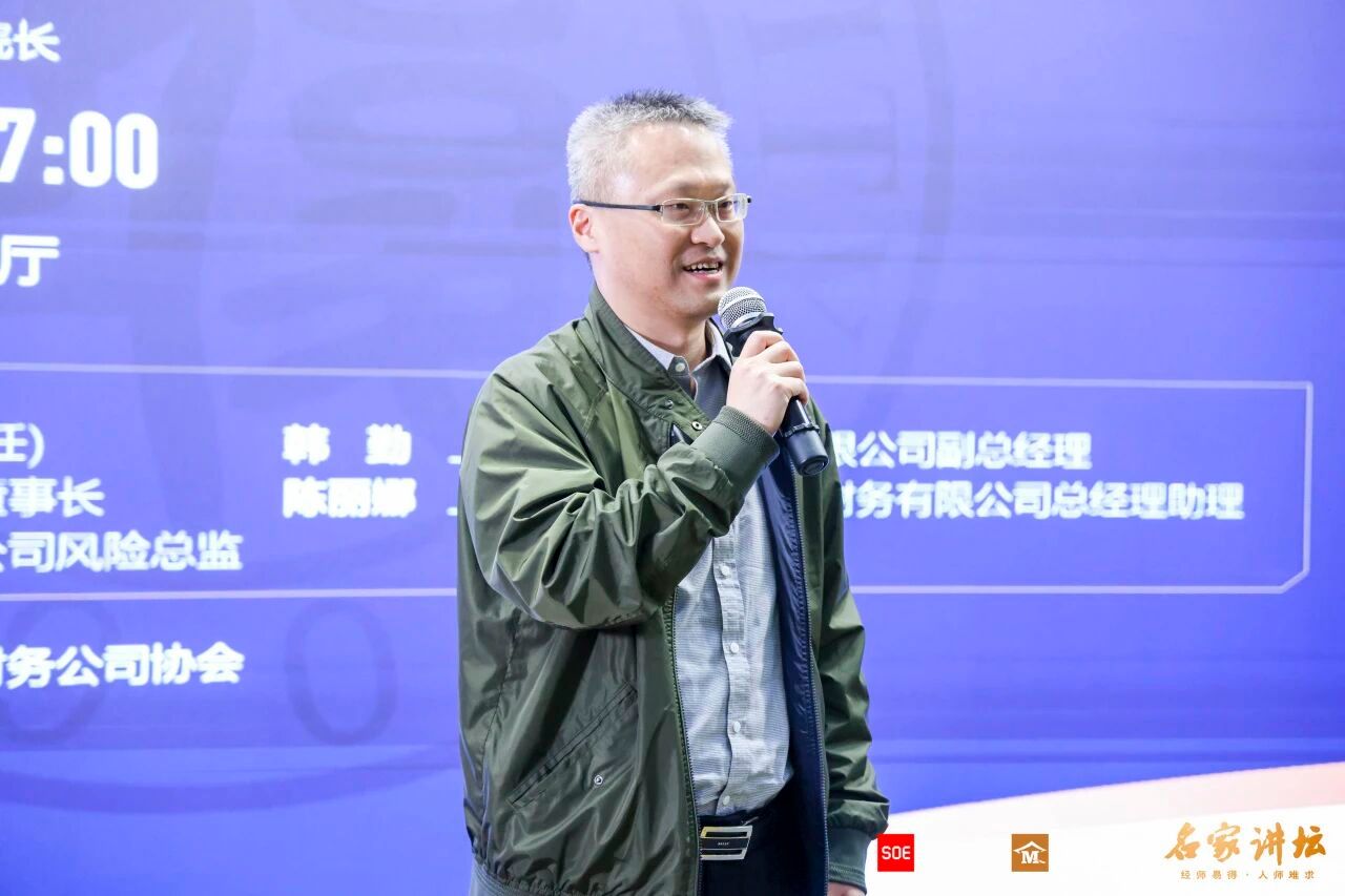 讲座结束后,本次讲坛进入下半场,许闲教授作为主持人邀请现场的特邀嘉宾,来自各集团财务有限公司的高管,逐一上台向同学们介绍财务公司中的业务相关情况。