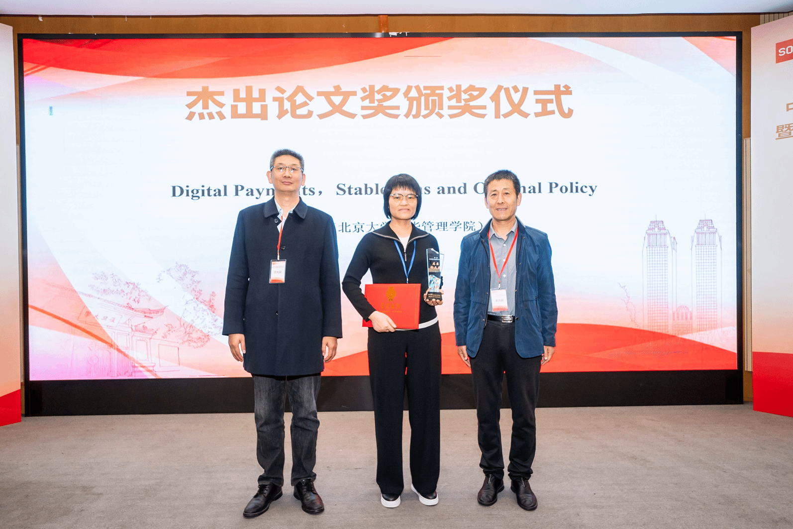 北京大学肖筱林的论文"Digital Payments, Stable coins and Optimal Policy"获得本届年会杰出论文奖。安徽财经大学金融自拍偷拍院长万光彩、天津财经大学金融自拍偷拍院长李向前共同为获奖者颁奖。