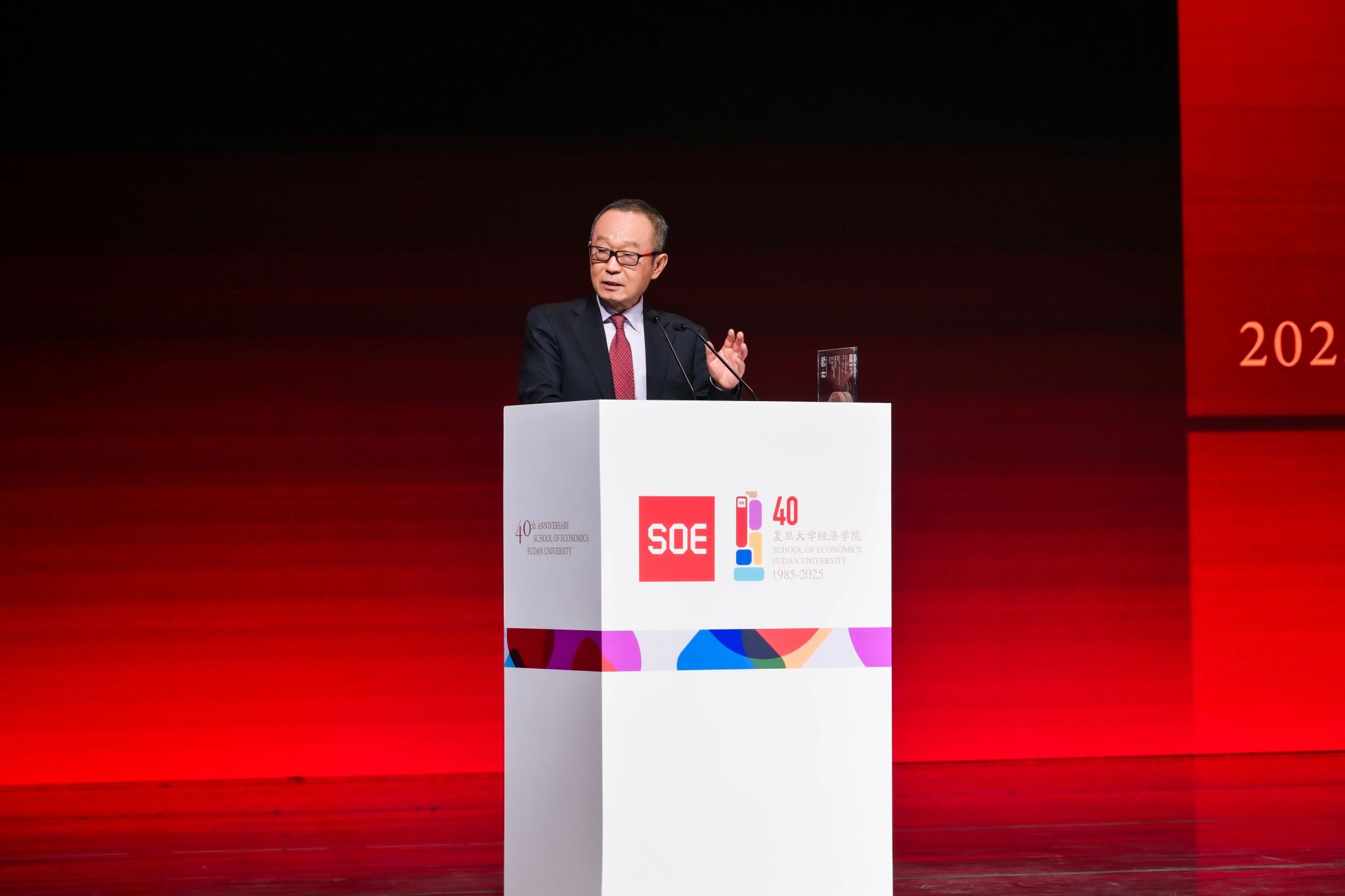 中国金融40人论坛学术顾问、重庆市原市长黄奇帆作为“老朋友”,分享了他对经济学研究的三点体会。他强调,经济运行有其内在规律,并非拍脑袋的产物,复旦经院等学术重镇严谨的理论推演为一线制度创新提供了坚实的逻辑起点。他勉励学子:一要有穿透现象洞悉本质的能力,不满足于热点表面的解读;二要有立足中国放眼全球的格局,基于中国国情总结规律;三要有知行合一“经世济民”的担当,将所学转化为推动社会进步的复旦能量。