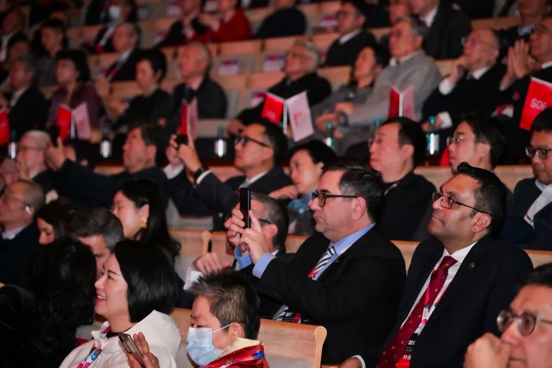 新大楼落成启用。这座矗立于国权路579号的现代化建筑,凝聚了无数校友和社会友人的深情厚谊与鼎力支持。大会播放了新大楼建设纪实影片和外滩亮灯仪式视频,并举行了捐赠答谢仪式,向赵定理、汪新芽、夏晓辉等慷慨捐资的校友及社会各界友人致以最诚挚的感谢。