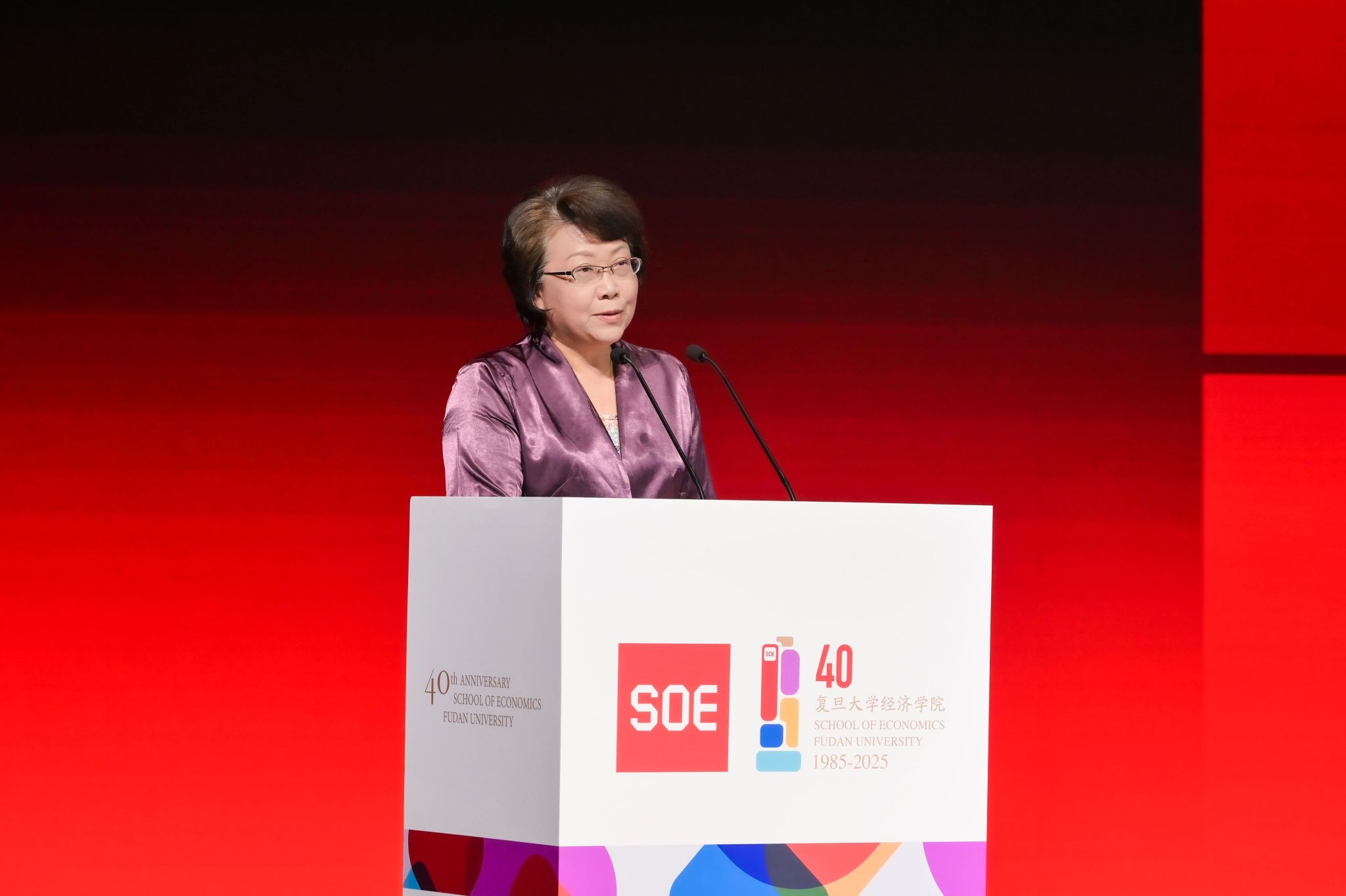 教育部原副部长、1981级校友翁铁慧回忆了作为恢复建院后首批学子的幸运,并寄语母院要努力造就能够讲好中国故事、参与全球治理的经济学拔尖创新力量,为构建中国自主经济学知识体系贡献“复旦方案”。