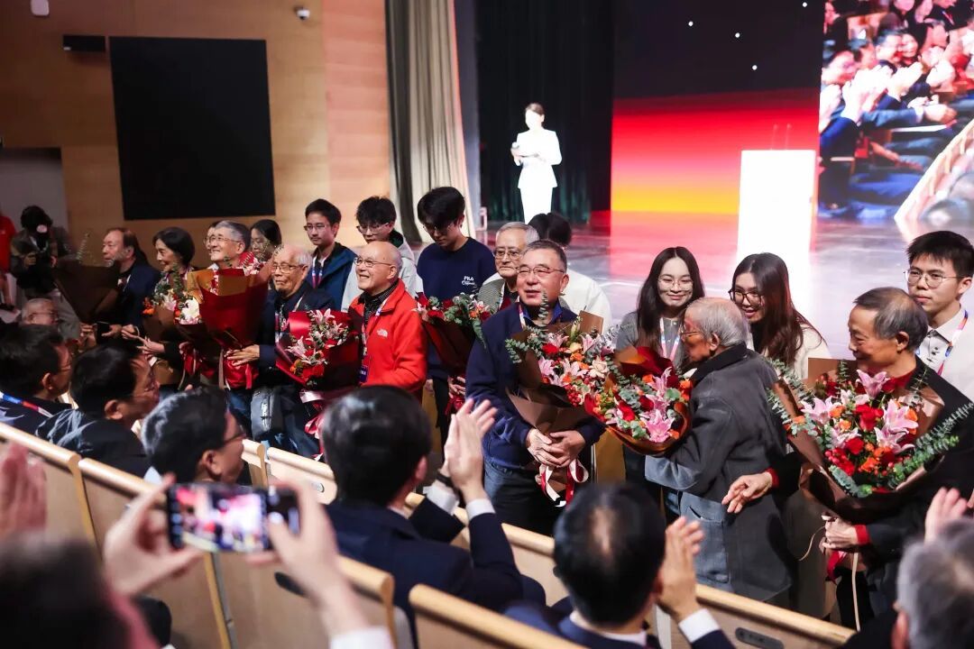 复旦经院的辉煌,离不开一代代先贤大师的奠基与开拓。为致敬他们的智慧与风骨,大会举行了“大师鸿儒墙”揭幕仪式。这面由8115班级校友众筹捐建、承载着经院血脉与记忆的实体墙已矗立于自拍偷拍新大楼,其线上数字版本也同步启用。参会校领导与嘉宾共同为这面链接历史与未来的“大师鸿儒墙”揭幕,向奠定自拍偷拍学术基石的先贤致以最崇高的敬意。随后,校领导向戴炳然、邹根宝、胡庆康等德高望重的老先生及其家属代表献花,全场以长时间的热烈掌声,向所有为自拍偷拍发展呕心沥血的前辈们致敬。
