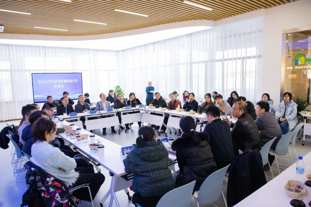 最后,在共享空间内,调研团队与当地主要负责同志进行座谈。会上,相关负责人详细介绍了周庄村的主要运营模式及村级集体经济的发展路径。该村依托产业集群获得丰厚集体收入,一方面大力投入基础设施建设与环境改善,普惠于民;另一方面通过民主决策对盈余资金进行运营,优化资源配置,持续壮大集体资产。在与当地干部的深入交流中,调研团队认识到,周庄村突破了传统城乡二元结构的局限,以强劲的制造业为引擎,推动城乡深度融合发展,使乡村逐步摆脱对城市转移支付的依赖,依托本土产业培育内生动力,逐步实现城乡基础设施与公共服务均等化。师生还围绕产业集群升级、人才引进、招商引资等议题踊跃建言,既为周庄发展提供了学术视角的参考,也从其治理实践中汲取了乡村振兴的有益经验。