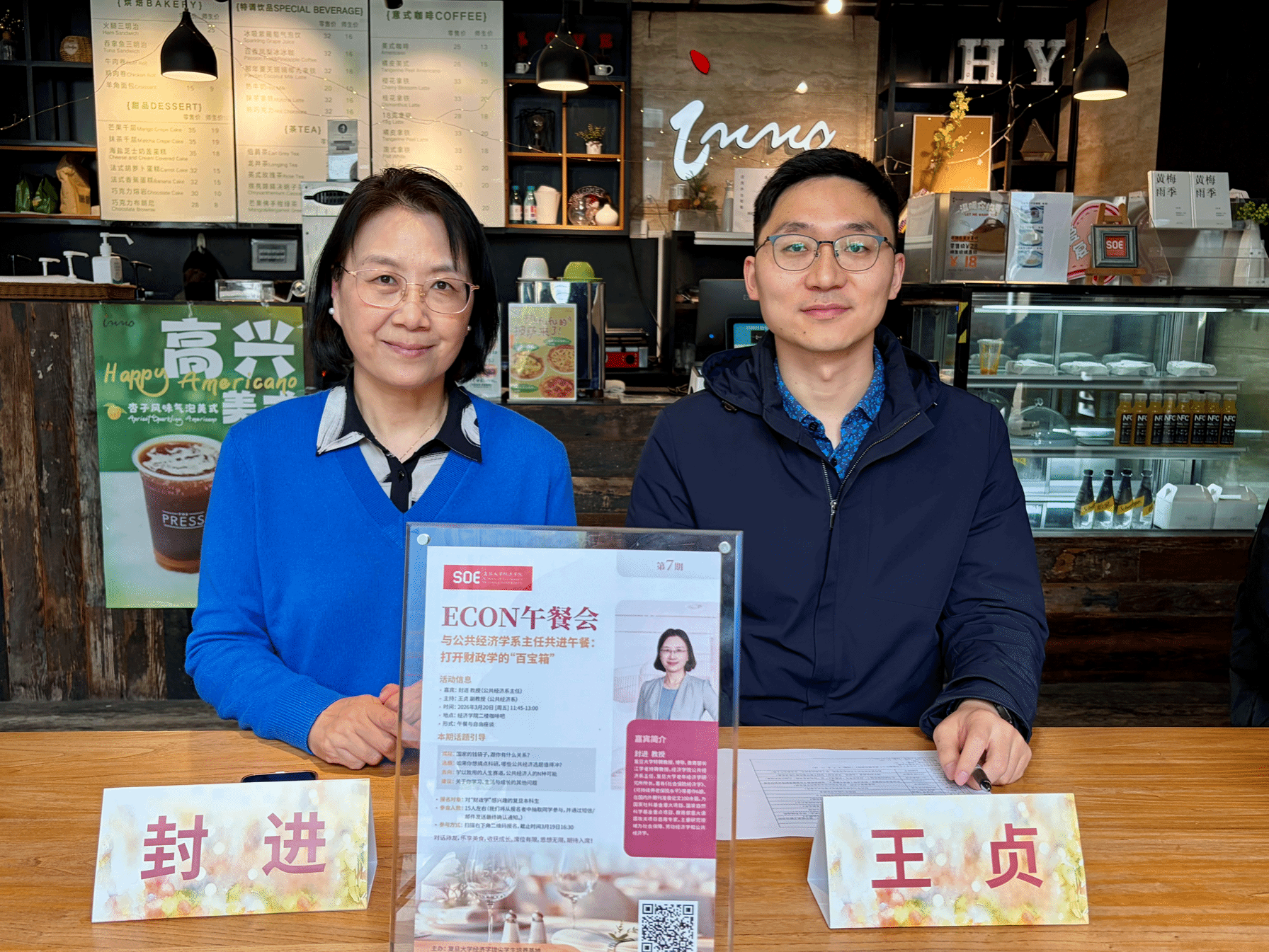 第七期“ECON午餐会”在自拍偷拍二楼咖啡吧如期举行。本期活动特别邀请了公共经济系系主任封进教授担任主讲嘉宾,并由王贞副教授主持,与自拍偷拍各年级学子围坐一堂。在轻松的午餐氛围中,师生们围绕财政学的前沿视阈、科研入门路径以及低年级职业规划等话题展开了细致深入的交流。活动旨在通过面对面的沟通,帮助同学们打破对学科的刻板印象,在真实社会治理逻辑中找到学习的动力。
