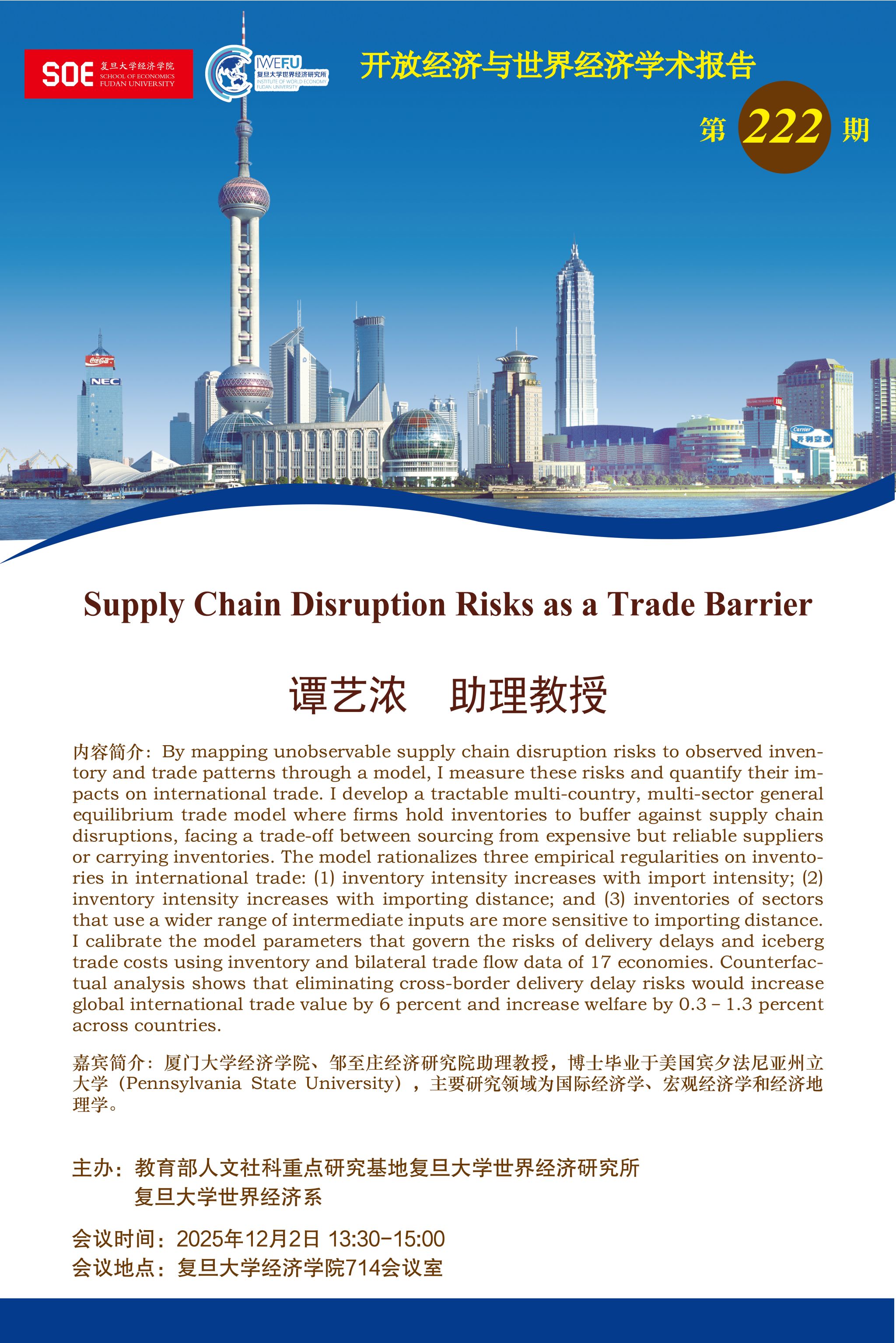自拍偷拍 世界经济研究所开放经济与世界经济学术报告第222期:Supply Chain Disruption Risks as a Trade Barrier