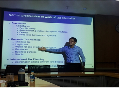接下来,倪先生为同学们讲解了国际税收筹划的具体工作,包括税收来源、税收天堂、不同公司的不同税收种类。倪先生重点为同学们讲解了公司债务与资本的区别,强调了中国的资本弱化原则等。另外,倪先生介绍了国际上其他公司用来进行税收抵扣的混合工具,如利息抵免、红利抵免。倪先生通过举例,向大家解释了为什么企业的综合税率会过高。原因有以下几点:一,公司分支机构的亏损没有被合理利用;二,预提税不能被抵扣;三,公司重组。如果公司没有进行良好的税收筹划,可能会引发双重征税问题,增加公司的税收负担。