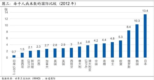 目前,美国的确诊病例仅有102例。但有理由相信,实际情况可能没这么好。虽然美国医疗资源丰富、医疗机构实力雄厚,但美国的政治、法律、公共卫生、及医疗与医保体系和中国有很大差别,在疫情防控方面也存在一些短板。例如,根据世界卫生组织(WHO)的数据,美国的人均医院病床数量尚没有中国多(图三),如果疫情在某些城市或州县扩散,其集中收治有可能面临挑战;另外,根据美国普查局的数据,2018年,美国有2700多万人(总人口的8.5%)没有任何形式的医疗保险(无论是政府提供的医保计划还是商业性的医疗保险),一旦这些人被感染,他们很大概率不会去医疗机构治疗,而是更可能选择自愈,这不但会在统计上低估美国疫情确诊的人数、增大重症或死亡的概率,而且有可能因为缺乏有效治疗和隔离措施而增大疫情扩散的风险。因此,我们认为疫情在美国的发展前景也不乐观。