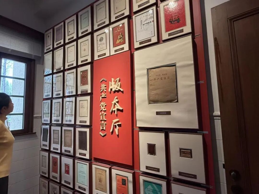 预备党员们在讲解员的引导下,有序走进陈望道旧居,开启了一场追寻真理、践行初心的精神洗礼。一楼展厅内,陈列着英、法、德等六种语言版本的《共产党宣言》,其中就有当年因印刷仓促而误印为《共党产宣言》的首个中文全译本复刻版,默默镌刻着马克思主义在中国落地生根、薪火相传的艰辛与坚守。