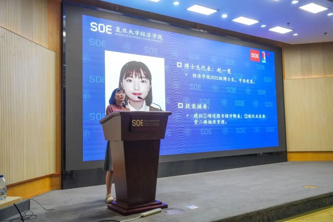 博士研究生代表主要围绕生活服务领域进行提案。如:博士生周瑜慧建议通过空间拓展、设备升级、管理优化等措施,完善北区健身房运动健身环境;博士生赵一曼建议增设图书馆升降桌,优化北区食堂二楼插座资源;博士生吴谦益建议为北苑学生生活园区宿舍楼下停车点增设雨棚。
