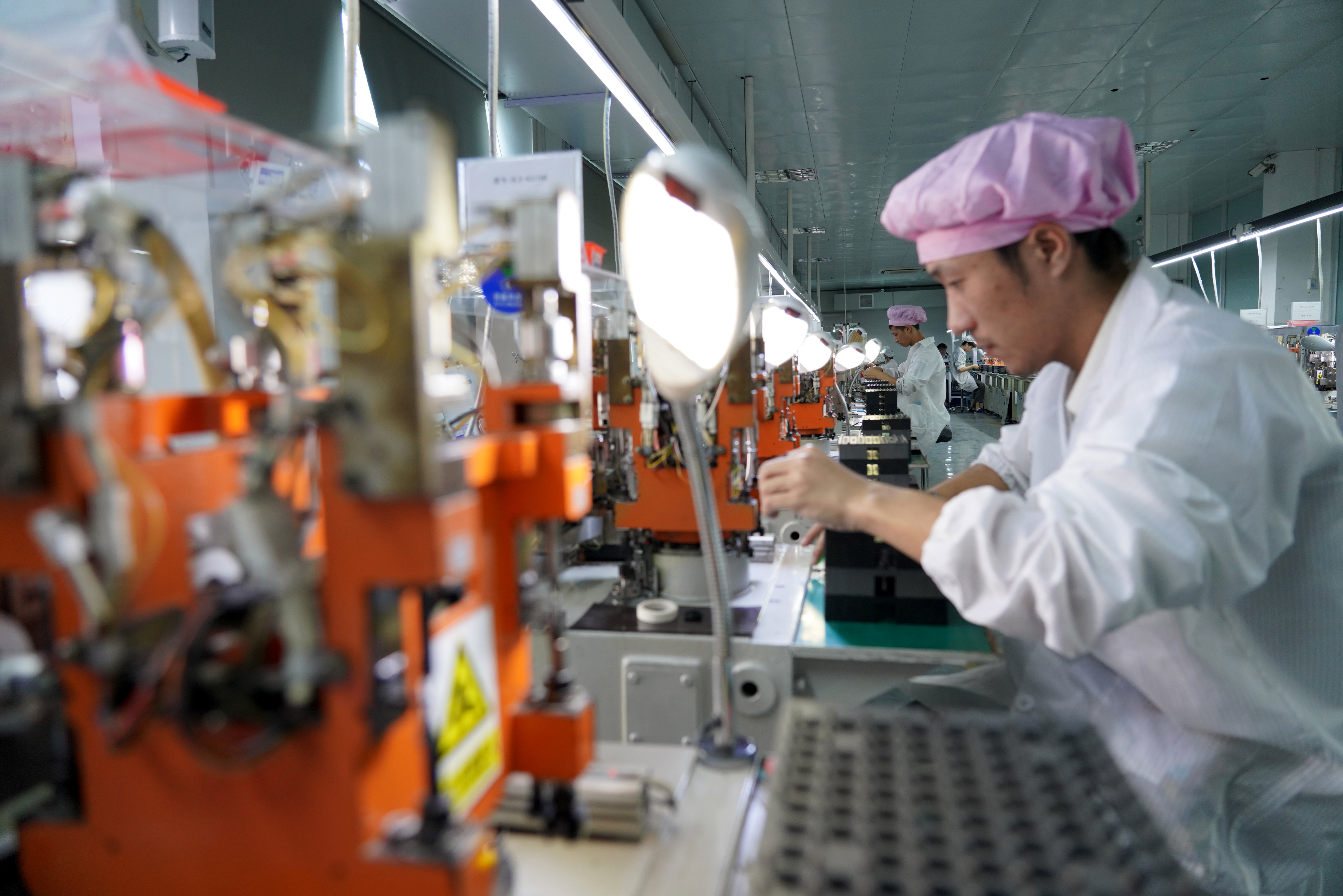 ▲过去二十年来,中国从实际出发,遵循比较优势规律,从加入WTO和全球化中获益良多。图为2021年10月5日,浙江温州,一家微型电机生产企业生产车间内一片繁忙。文:罗...
